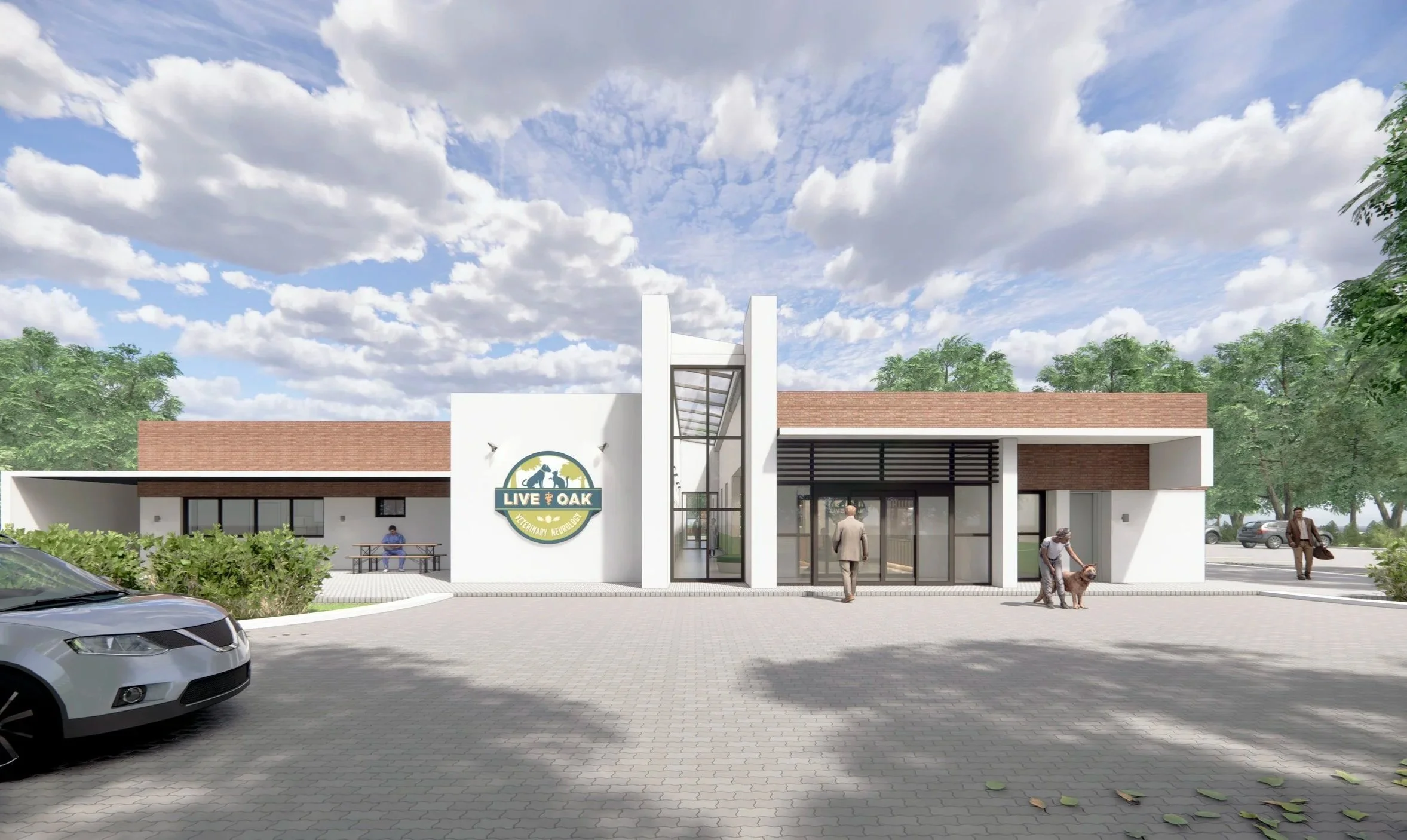 This large scale new-build will see a 10,000ft2 multi-speciality and emergency veterinary clinic in the heart of Savannah, Georgia. The 4 acre site has been designed with future expansion in mind, but comes with a whole range of amenities including landscaped walkways, a large car park and a dog park with a lake.