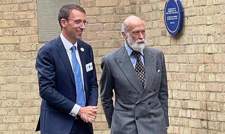 Image shows Prince Michael with Peter Laurie, Chief Executive of Battersea Dogs & Cats Home.